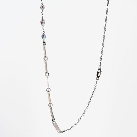 Hammered Oxidized Silver and Pearl Necklace
